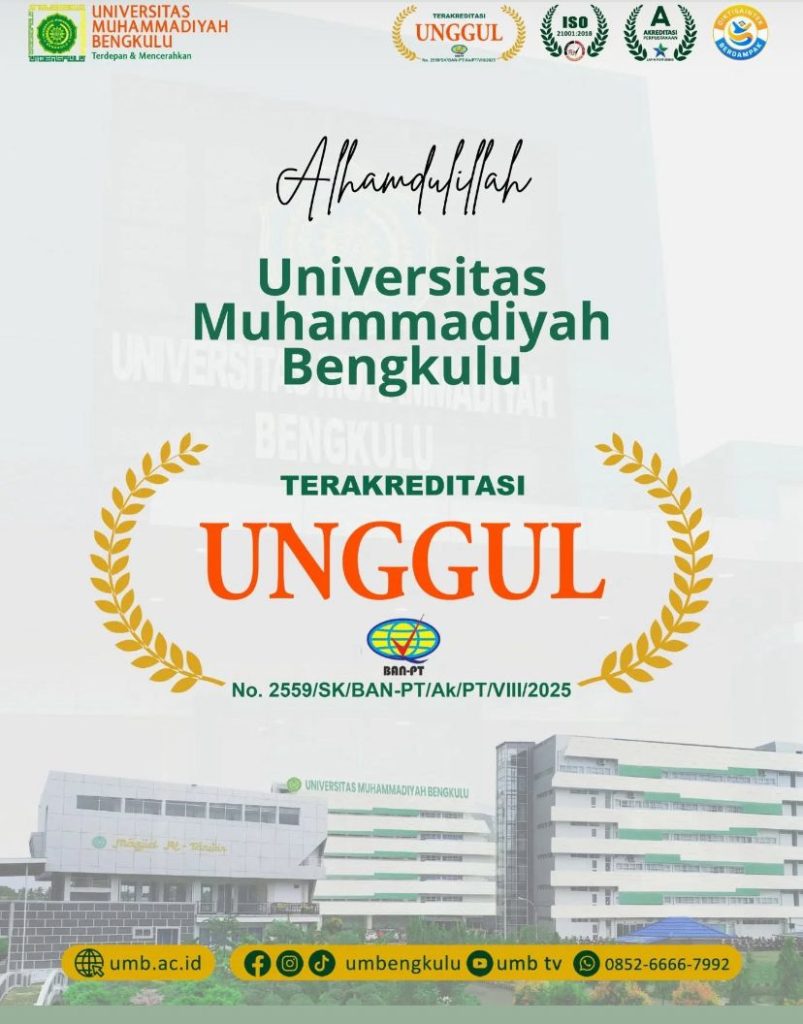 Universitas Muhammadiyah Bengkulu (UMB) kembali menorehkan prestasi membanggakan di tingkat nasional. Berdasarkan Surat Keputusan Badan Akreditasi Nasional Perguruan Tinggi (BAN-PT) Nomor 2559/SK/BAN-PT/Ak/PT/VII/2025, UMB resmi meraih peringkat Akreditasi Unggul.